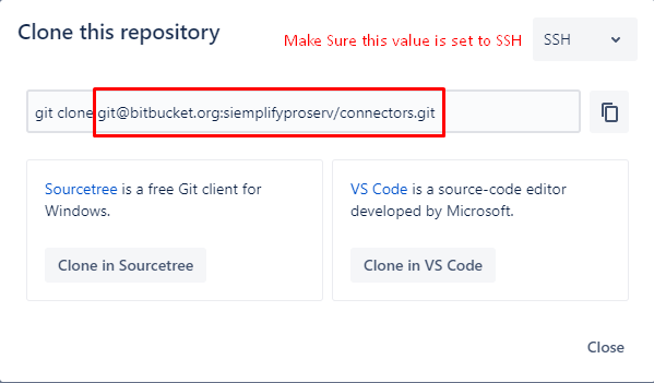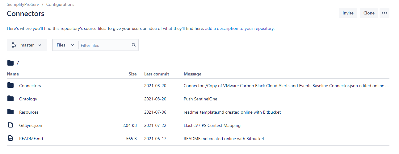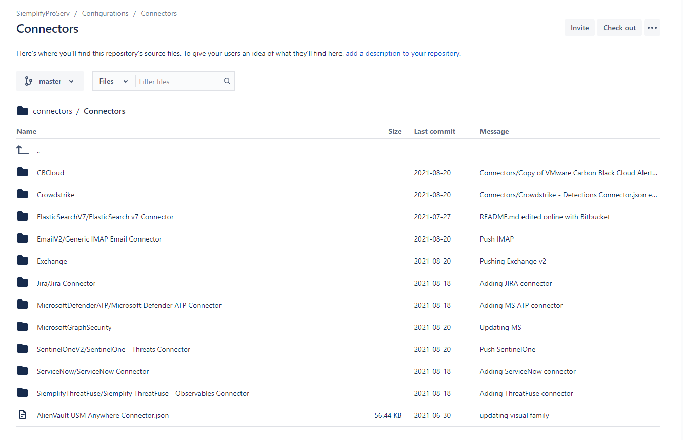 User/Pass or Token Authentication - The repository URL is https://bitbucket.org/siemplifyproserv/connectors.git . (Username can be ignored)