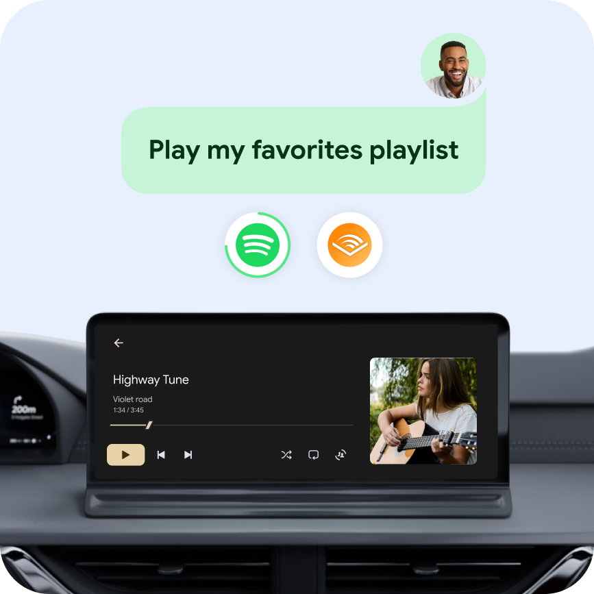 গাড়ির ডিসপ্লেগুলি ড্রাইভার এবং সামনের আসনের যাত্রীদের আপনার অ্যাপের সাথে যুক্ত হওয়ার অনেক উপায় প্রদান করে - ড্রাইভিং-অপ্টিমাইজ করা অভিজ্ঞতা যেমন নেভিগেশন বা সঙ্গীত এবং পডকাস্ট শোনা, ভিডিও স্ট্রিমিং এবং গেম খেলার মতো পার্ক করা অভিজ্ঞতা।