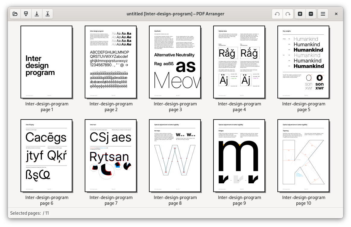 PDF Arranger is a fork of Konstantinos Poulios’s PDF-Shuffler (see Savannah or Sourceforge). It’s a humble attempt to make the project a bit more active.