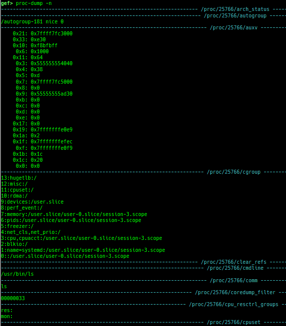 gefas sub-command. - The cache structure within GEF has changed significantly. This command corresponds to them.