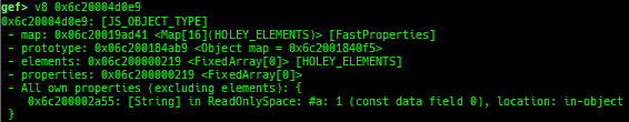 optee-bget-dump: dumps bget allocator of OPTEE-Trusted-App.v8: displays v8 tagged object.cage: displays v8 (especiallyd8) ubercage.v8-list-maps: lists v8 (especially d8) built-in maps.v8-dump-space: dumps v8 (especially d8) heap objects in each space.