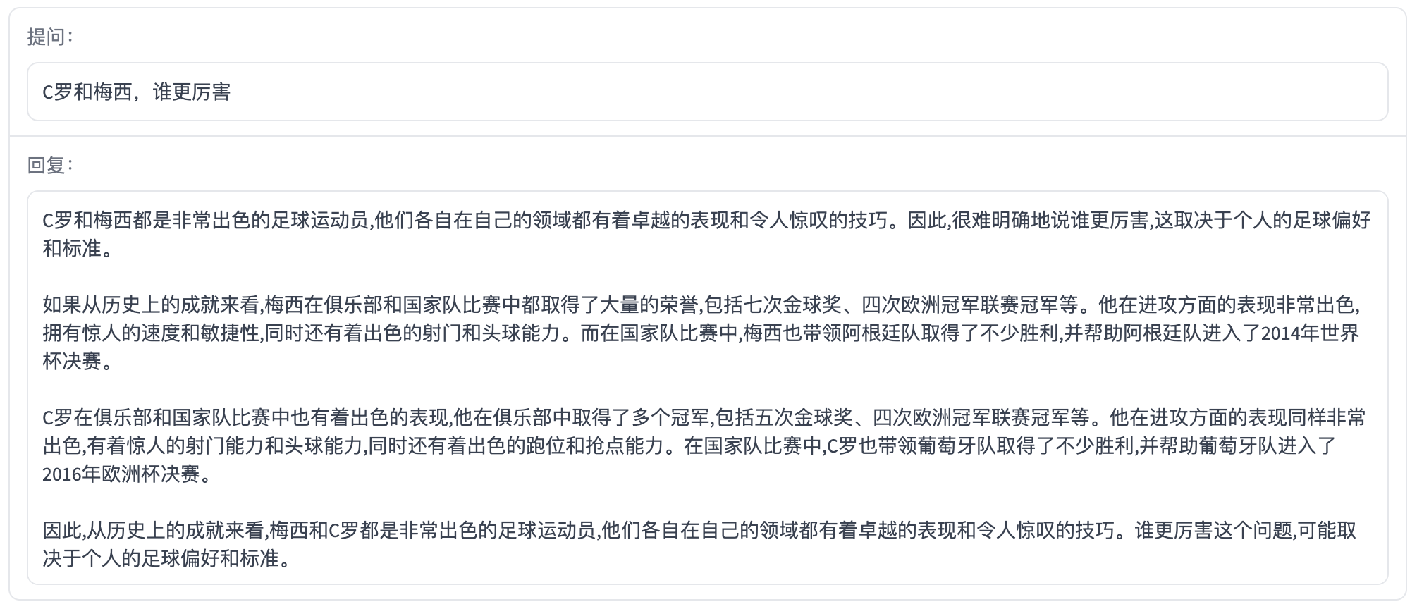 不过,由于 ChatGLM-6B 的规模较小,目前已知其具有相当多的局限性,如事实性/数学逻辑错误,可能生成有害/有偏见内容,较弱的上下文能力,自我认知混乱,以及对英文指示生成与中文指示完全矛盾的内容。请大家在使用前了解这些问题,以免产生误解。更大的基于 1300 亿参数 GLM-130B 的 ChatGLM 正在内测开发中。