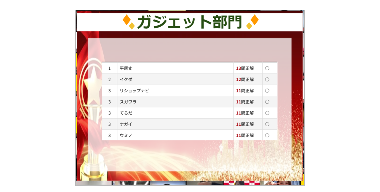 今回はチーム戦ではなく、個人戦で実施し、途中順位が発表されるごとに非常に盛り上がりました。