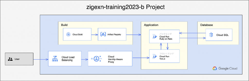 本研修では、アーキテクチャからバックエンド、インフラ周りの実装を担当しました。