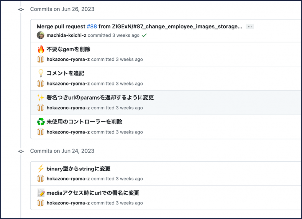 Github上でコミットログを見てみると、変更内容をひと目で把握することができます。また、タイムラインが可愛くなるので、何度も見返したくなります!