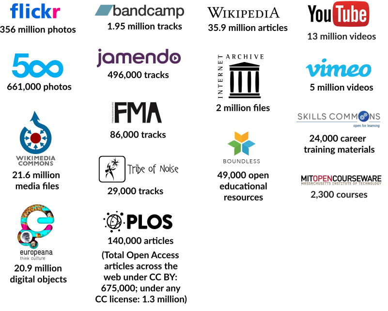 Note: Data reflects total CC licensed works on each platform, only 16 websites out of millions. Dig into our data sources.
