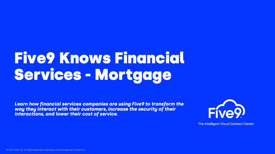 Whether it’s in banking, lending, investment, or insurance, customers expect their financial services experiences to be fast, easy, and secure. All banking and finances institutions must meet strict regulations and data controls, which have become tighter since GDPR, so moving to the cloud to meet customers’ expectations during their financial journey makes sense now more than ever before. Five9 Intelligent Cloud Contact Center empowers your business to rapidly and cost-effectively deliver the customer experience financial services that your customers want with superior omnichannel, AI, and deep integration capabilities.