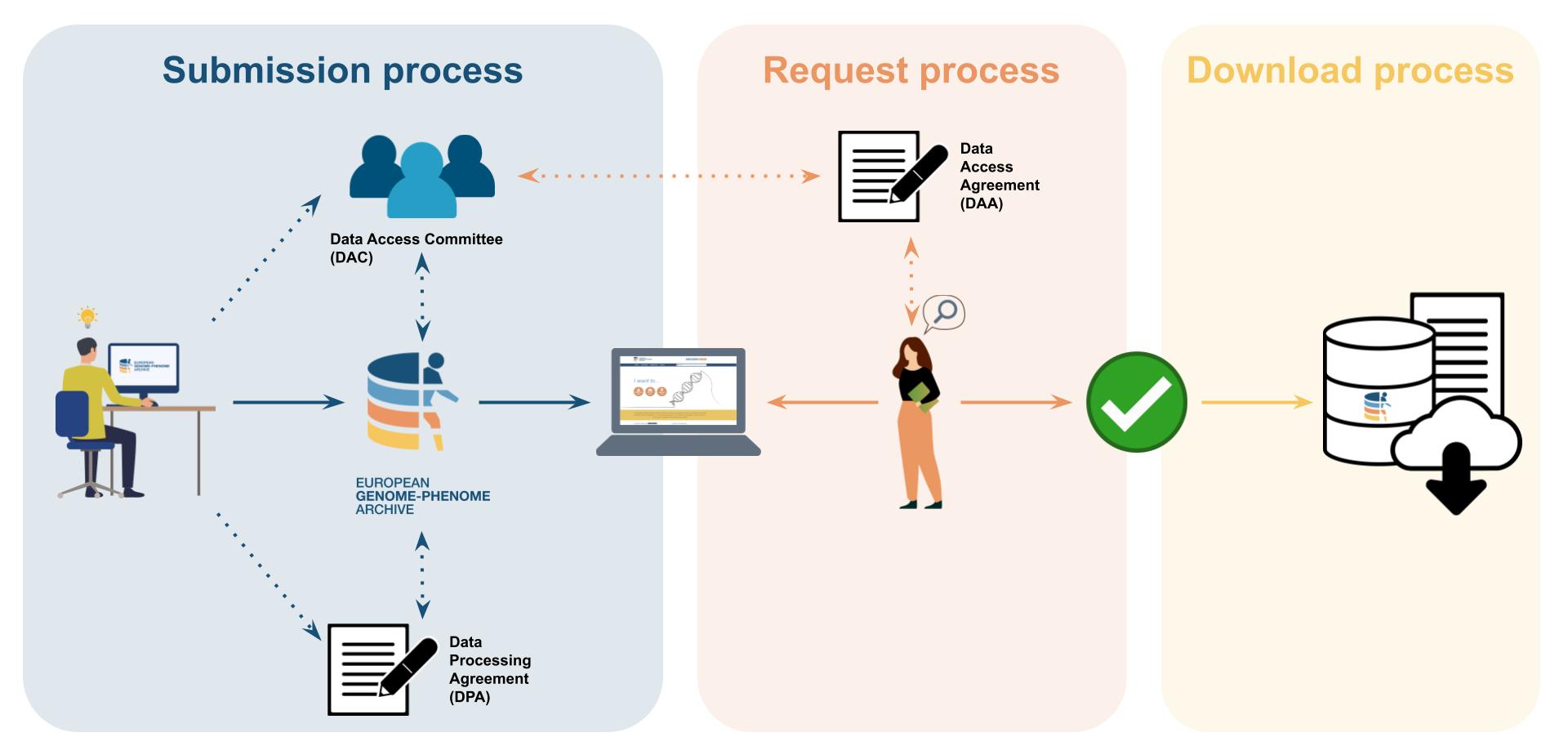 If you're a researcher you may need to deposit, manage, or access genomic data in a secure and regulated way. The European Genome-phenome Archive (EGA) is a platform that facilitates these processes, ensuring that sensitive data is stored and shared in accordance with legal and ethical regulations.