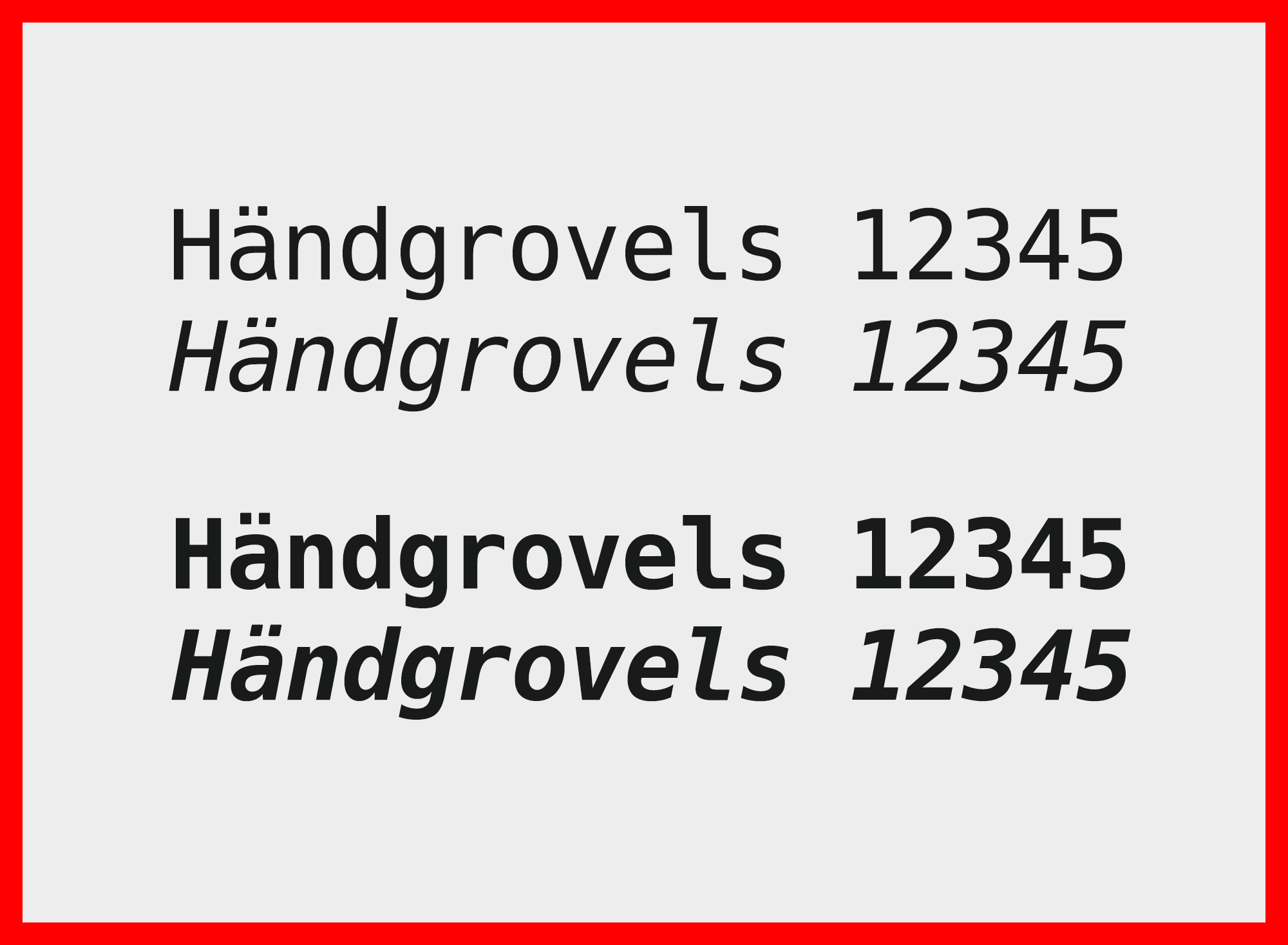 Strategically placed serifs improve the rhythm of the monospaced text by eliminating large gaps on each side of narrow characters and help to distinguish glyphs like the lowercase l and number 1 at small text sizes.